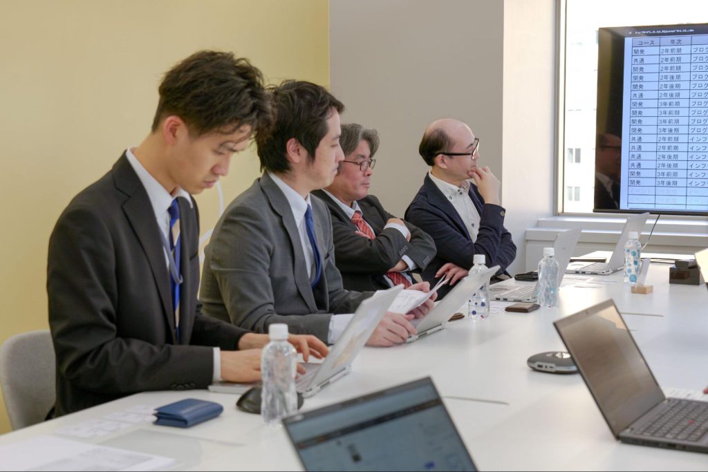 学校側は現在、学科を再編し「就職後も活かせるスキルを持つエンジニア育成を目 的とした開発系コース」の新設を構想しています。その狙いは、学生が目指す進路 から逆算して学びの内容を設計すること。エンジニアが活躍する業界は現在では多岐にわたります。そのなかでも、学生に特に人気のゲーム業界への就職を見据え、現場で求められるスキルを身につけられる教育内容を具体的に検討しています。