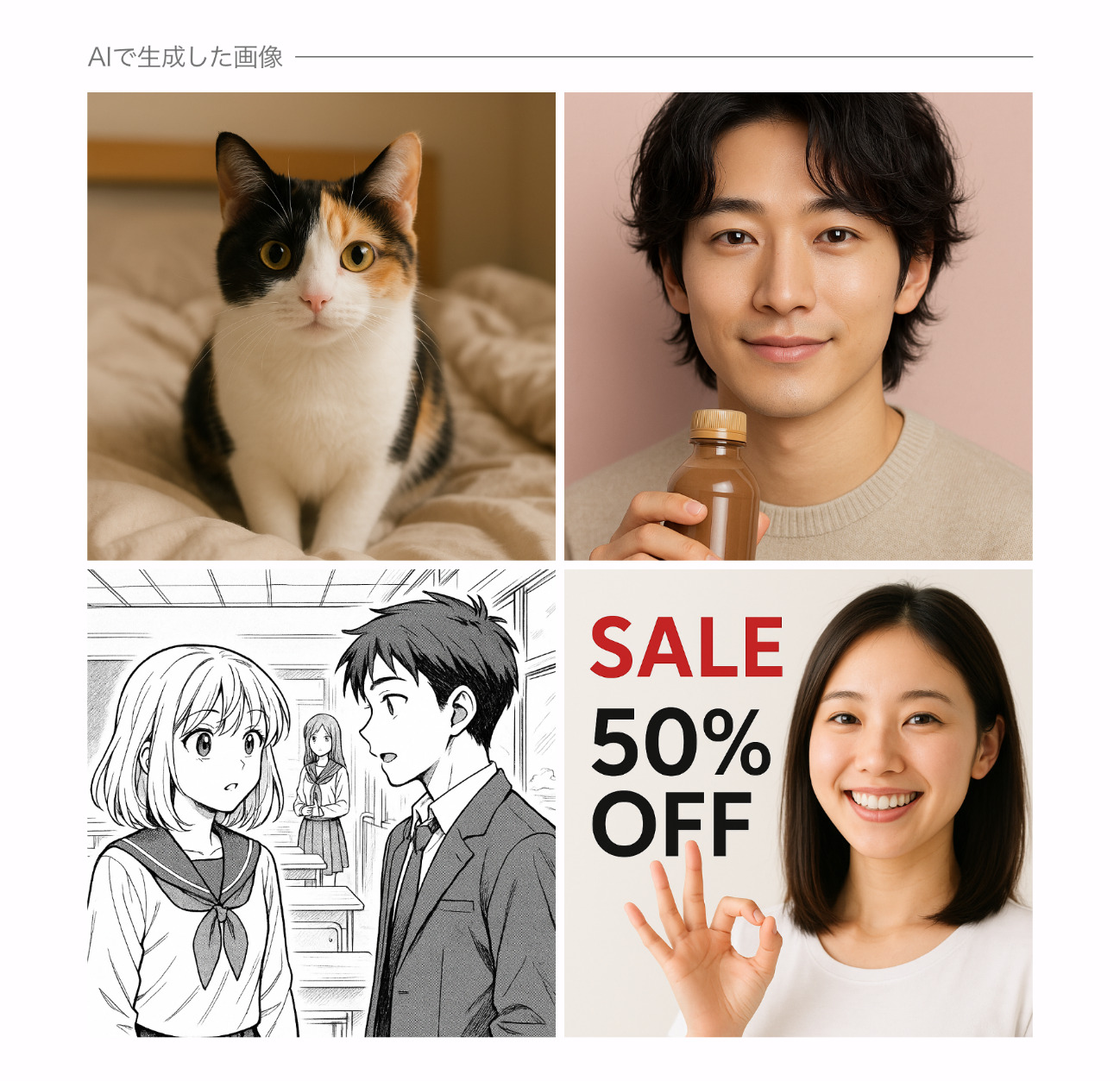 GPT image-1をベースに軽量化・高速化されており、短時間でイメージの試作やアイデア確認が可能です。直感的な日本語プロンプトで操作できるため、マーケティング担当者や企画担当者が、広告やキャンペーン素材のラフ案作成、商品コンセプトのビジュアル化、社内プレゼン用の簡易デザイン作成などを手軽に行えます。GPT image-1と併用することにより、高解像度や本制作はimage-1、スピード重視の試作やアイデア確認は image-1 mini、と効率的に使い分けが可能です。これにより、短時間での意思決定や企画検討をサポートし、業務効率化とクリエイティブ活動の加速に貢献します。