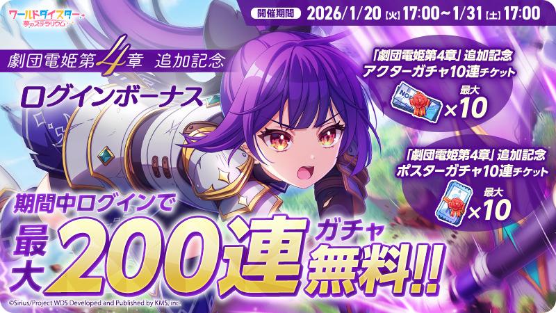 ポスターガチャ最大100連が引ける特別なログインボーナスを開催いたします。
