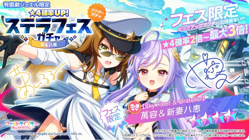 20日(火)からは、『劇団電姫 第4章』やログインで最大200連無料ガチャが開始いたします。26日(月)からは、新たなペアアクター★4【Sky Fleet & Oratorio!】萬容&新妻八恵が追加されます。