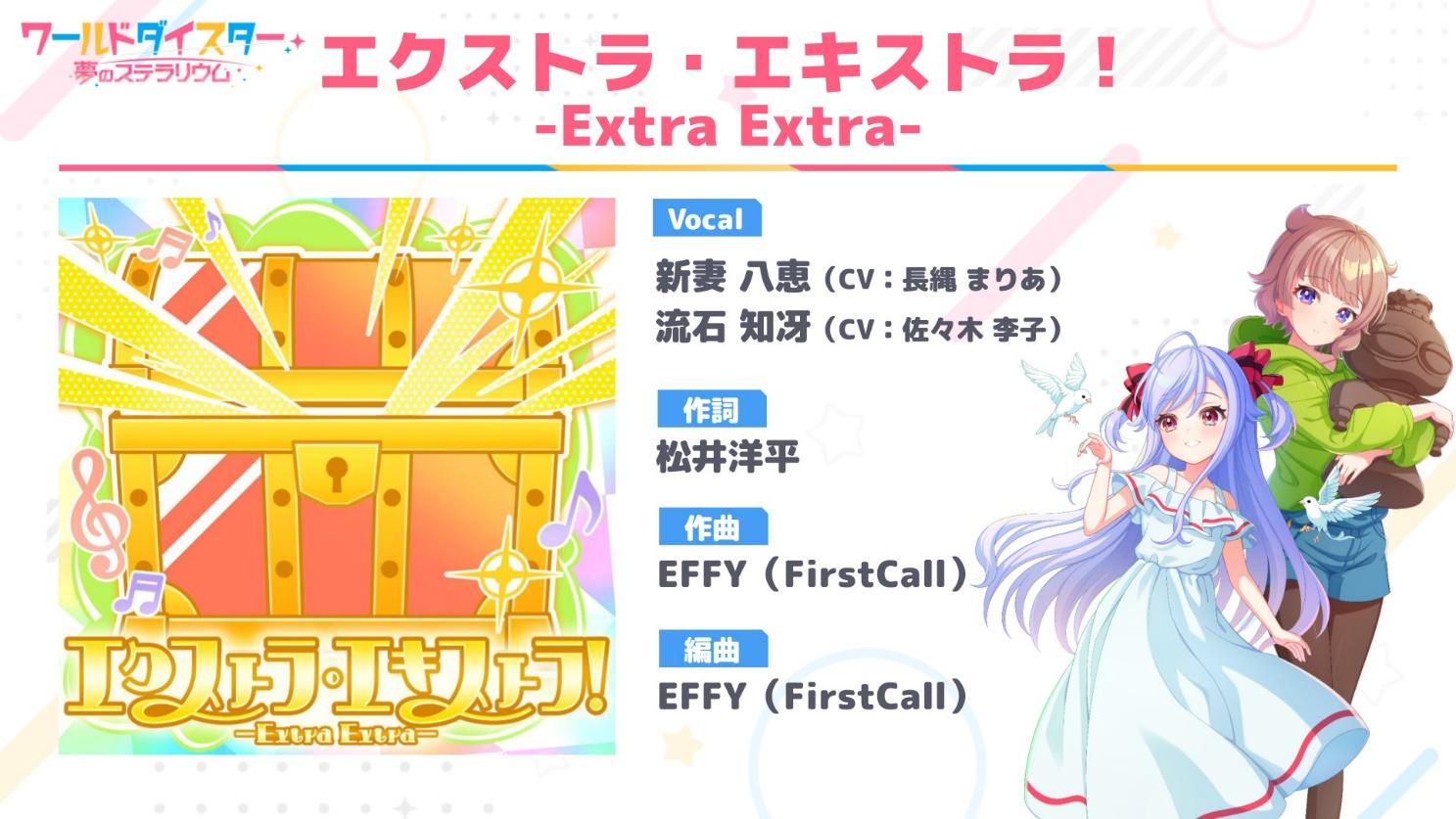 新妻八恵と流石知冴が歌唱する高難易度楽曲「エクストラ・エキストラ! -Extra Extra-」が1月26日(月)17:00に追加されます。